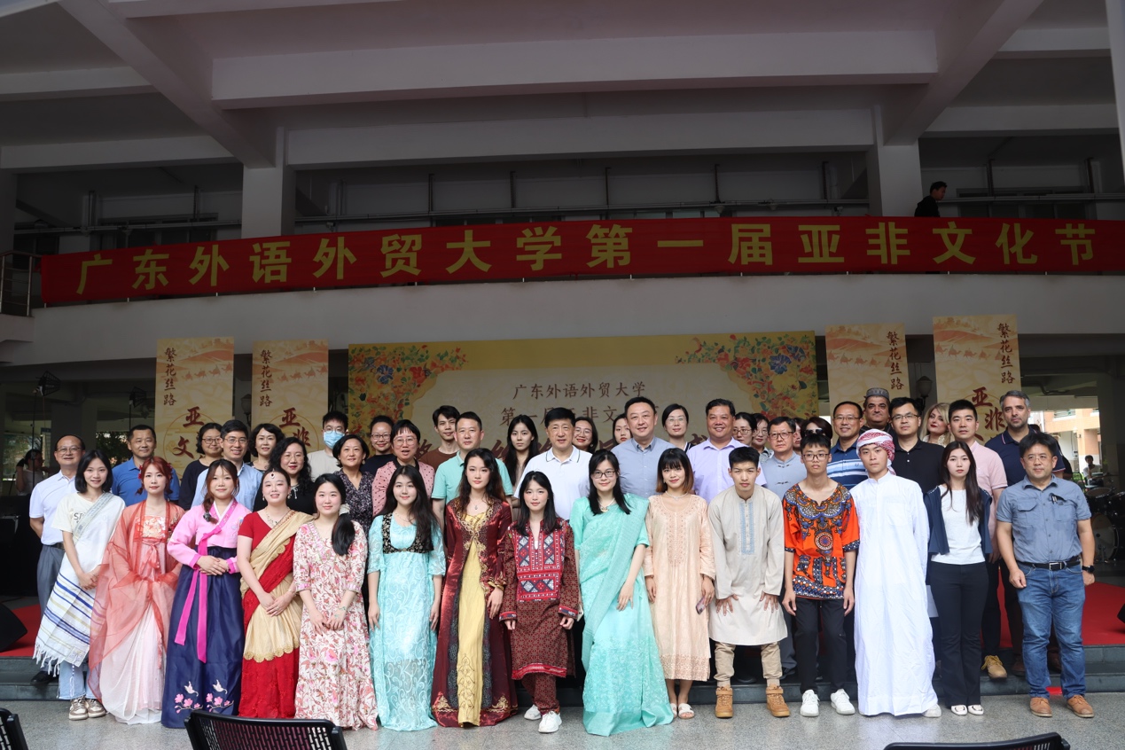 本网讯 5月16日下午,广东外语外贸大学亚非语言文化学院第一届亚非文化节在白云山校区隆重举行。广东省人民政府外事办公室原主任、广外非洲研究院创院院长傅朗,校党委副书记唐锐,亚非语言文化学院相关负责人,学校相关职能部处、学院和研究机构等单位负责人、亚非学院全体师生以及广外附属科学城实验学校师生代表参加了开幕式。