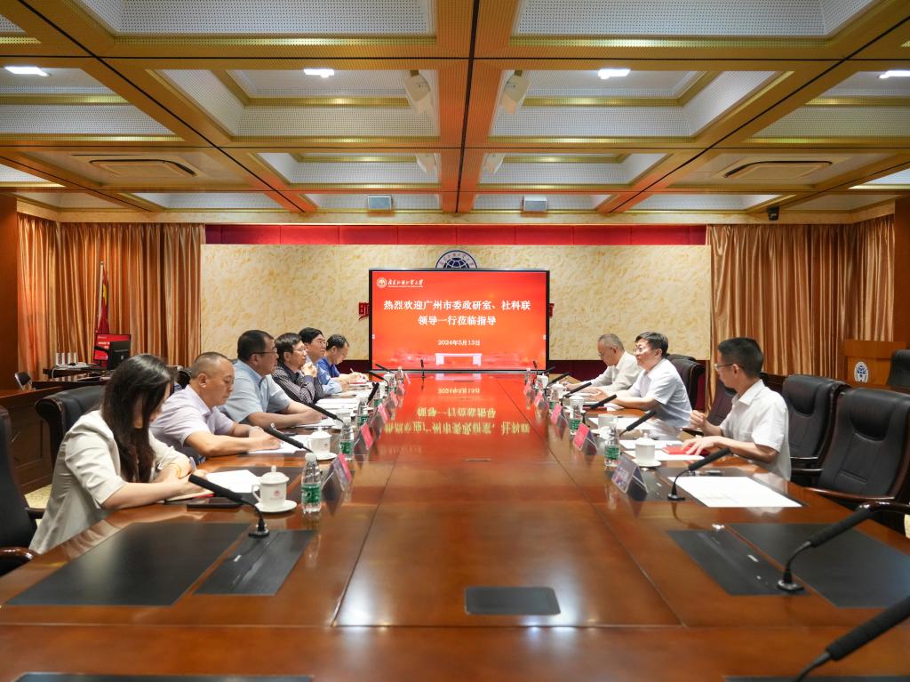 本网讯 5月13日下午,广州市社会科学界联合会党组书记、主席崔颂东,党组成员、专职副主席郭德焱,中共广州市委政策研究室副主任王文琦一行到我校调研和座谈,校长闫相斌、副校长何传添等出席座谈会。