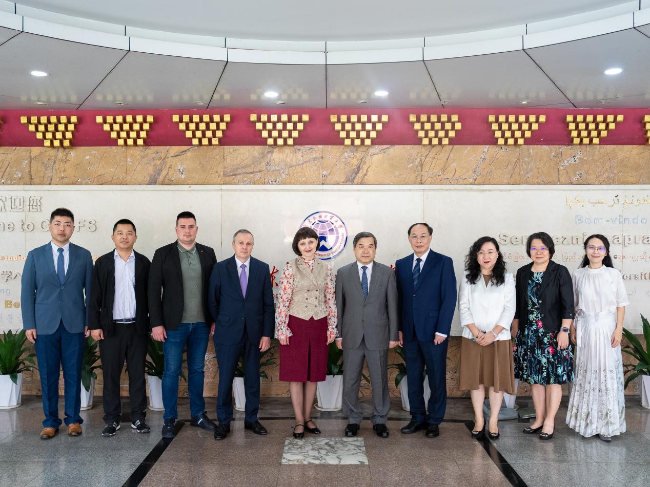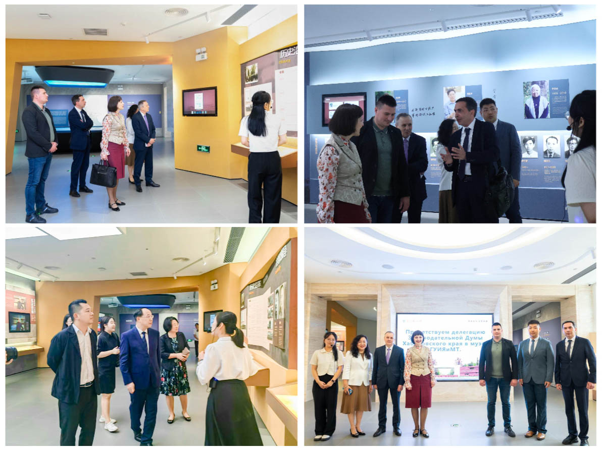 会见后,来访团一行前往校史馆参观。我校西语学院学生用俄语向外宾介绍学校历史。