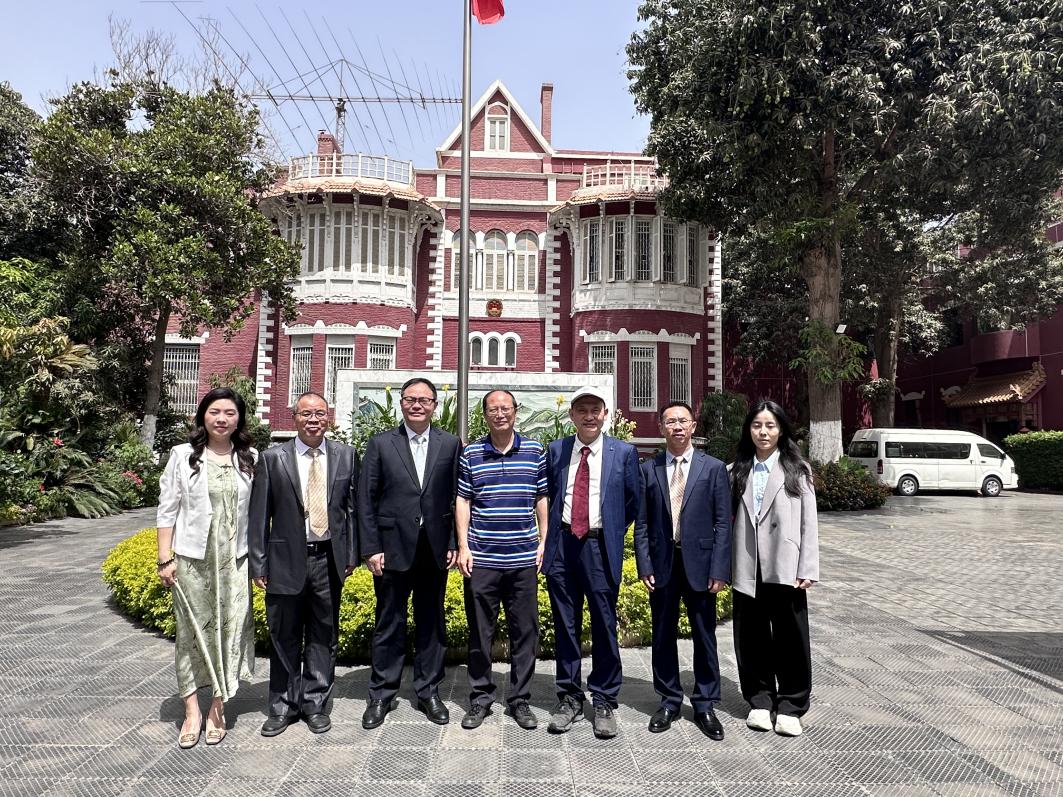 访问期间,代表团来到位于埃及首都开罗中国驻埃及大使馆,拜访了中国驻埃及教育公参卢春生,代表团就如何依托两地高等教育合作积极促进中埃两国互利合作、推动两国人民友好交往,助力埃及当地的国际汉语教育发展,巩固双边战略伙伴关系等方面提出了建议和看法。