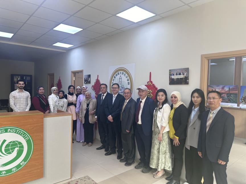 在埃访问期间,代表团还走访了我校与埃及艾因夏姆斯大学共建的孔子学院。艾大孔院在当地积极开展汉语推广和中埃文化交流活动,孔院的建设全面促进了两校的深度合作与交流,为加深两校合作情谊,中埃两国人民的相互理解做出了积极的贡献。代表团与孔院外方院长纳赛尔教授、中方院长黄露阳及孔院一众师生进行座谈,深入了解了孔院建设的标志性成果及教学情况。