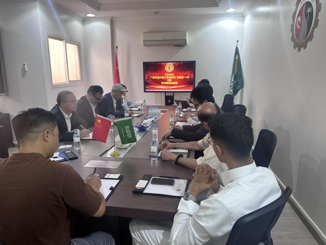 首先,代表团拜访了位于沙特阿拉伯利雅得的沙特广东商会。沙特广东商会作为中沙之间的友好桥梁,促进了中沙双方的相互了解和友好往来。座谈会上,双方就扩大经济技术合作,推动文化和教育交流及探讨国际中文教育合作、学生实习实践基地与学生就业推荐的可能性交换意见,展开了深入的讨论。