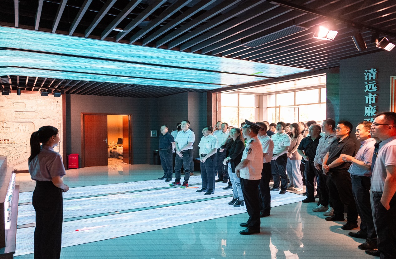 在基地讲解员的引导下,学校党员领导干部依次有序参观“序厅—廉泉之源、清之源—廉洁文化源远流长、清之律—规圆矩方防微杜渐、清之诫—激浊扬清乾坤朗朗”等展厅,展厅利用声、光、电、网多种现代展陈技术展出了30多个先进典型和清远近年来查处的80多个反面典型案例,让廉政警示教育可听、可看、可触、可感。大家每到一处,均专心驻足感悟,深刻感受古今清官廉吏、革命先烈和先进人物廉洁奉公、忠诚履职的感人事迹;每观一案,一个个鲜活的典型案例,向在场的党员领导干部敲起一声声响亮的警钟,警醒大家切实把遵规守纪刻印在心,坚守底线、不越红线、不碰高压线。