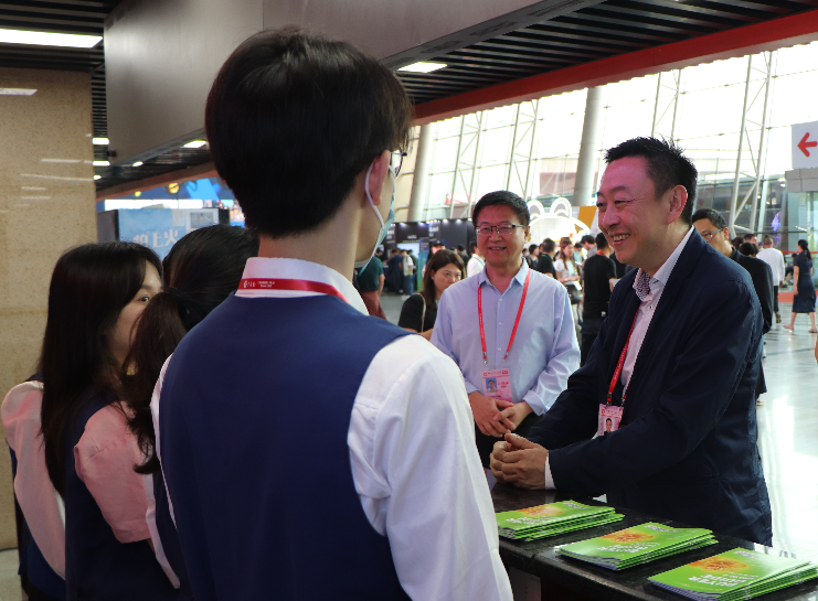 会谈后,唐锐一行参观了广交会发展史陈列馆,并先后来到境外贵宾俱乐部、展馆咨询处、文创馆、办证大厅等工作岗位,看望慰问实习学生。慰问期间,唐锐一行也走访了校友企业广东盈浩工艺制品有限公司的展位,双方就校企合作、人才培养、实习就业等方面开展交流。