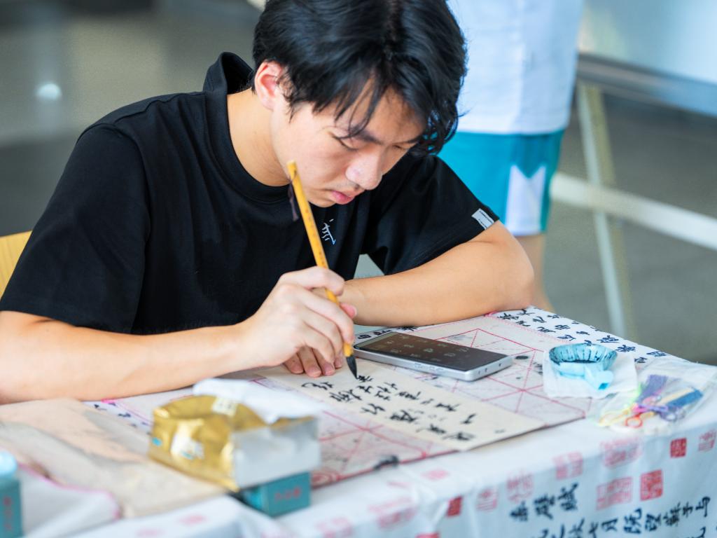 在墨香雅韵活动现场,古典韵味的装饰、充满中国古典元素的汉服、独具特色的漆扇文化融合展示。现场还展示了与中国非遗文化紧密相关的创新创业项目,让同学们感悟中国传统非遗文化魅力的同时体验大学实践活动的乐趣。为更好地宣传学院特色,创意市集上汇聚了世界各地的文化精粹。西班牙的面包香气四溢,特色饮品清爽可口;印尼的昂格隆乐器和哇扬戏带来了独特的艺术体验;泰国文化打卡框和卡通泰国服饰展示台尽显异域风情。体验了印尼昂格隆乐器的唐同学表示,“这里让我感受到了各国文化的交融与碰撞,视野得到拓展,这种文化体验真是很有趣、很奇妙,希望有机会来广外就读。”