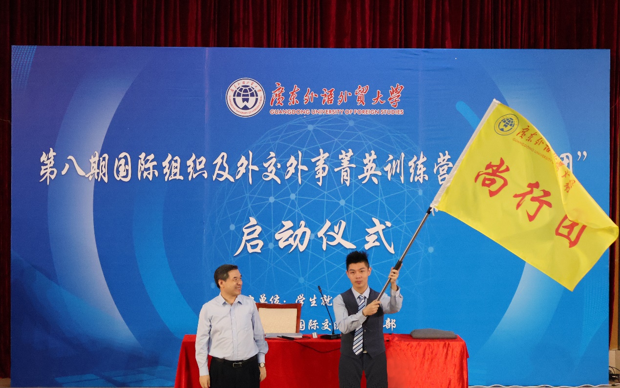 启动仪式上,焦方太介绍了学校国际组织人才培养和推送工作情况。他指出,为推进国际化特色鲜明的高水平大学建设,学校于去年推出了“国际交流合作PRIME”计划,国际组织及外交外事菁英训练营和“尚行团”正是该计划的实施内容之一,旨在帮助学生了解国际组织及外交外事工作,提升学生到重点领域就业、到国际组织实习任职的就业竞争力和职业发展力。他对本次参与训练营的各位同学寄予殷切期望,希望同学们树立远大理想,把握时代大势;担当时代责任,积极投身实践;珍惜学习机会,提升眼界格局,将来能够为中国发声、为改变世界奉献青春力量。随后,焦方太向“尚行团”学员代表授旗。