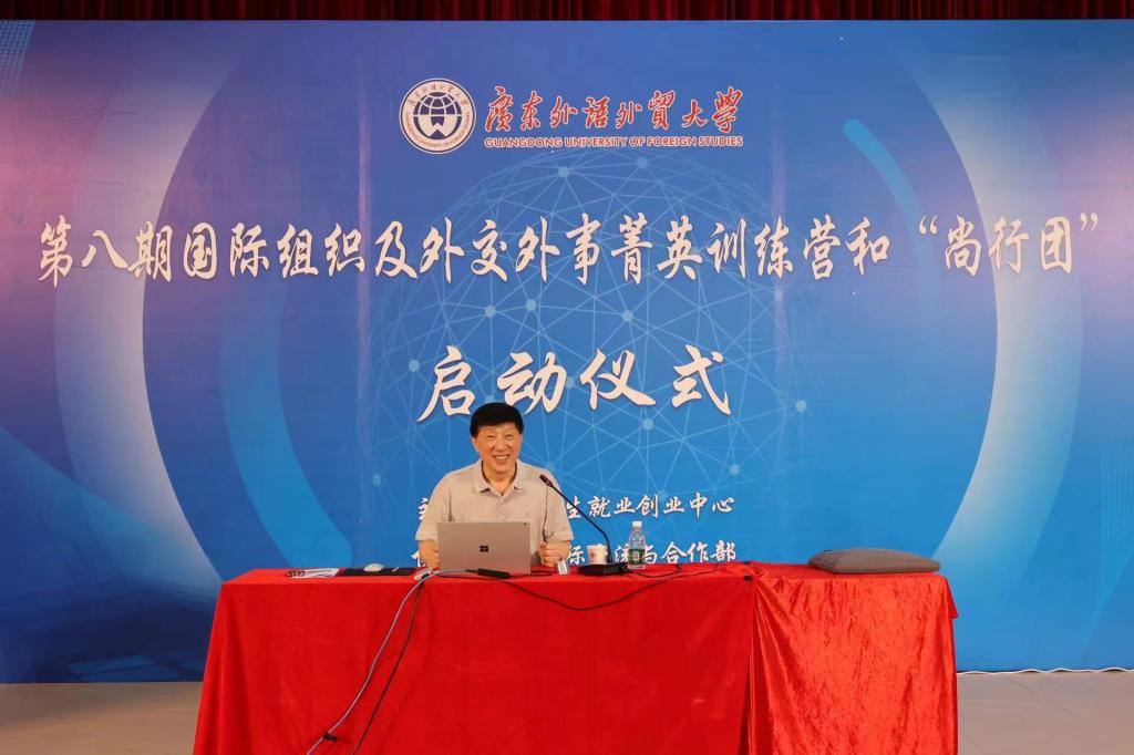 学生就业创业中心主任康为茂主持启动仪式。启动仪式结束后,广东省外事办公室原主任、我校客座教授傅朗为同学们作题为“外交足迹”的开营第一讲。傅教授从事外交、外事工作40多年,足迹遍及五大洲的130多个国家和地区。讲座中,他生动地介绍了200多张照片背后的外交故事,展现了其卓越的外交成就和风采,开拓了学生的国际视野。