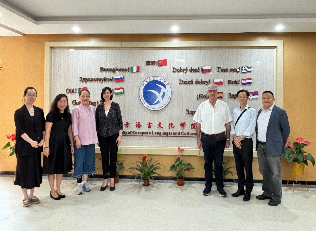 次日,波尔图大学代表团参访我校西方语言文化学院。西方语言文化学院院长杨晓敏、副院长臧宇以及葡萄牙语系主任尚雪娇与波尔图大学一行进行座谈交流,双方就学生交流、硕博项目的合作等进行洽谈并达成合作意向。代表团还深入外教雨果·迪乌斯·蒙泰罗(Hugo de Deus Monteiro)的葡语课堂,深入了解我校葡语专业教学情况,并对我校葡语专业教学质量表示高度肯定。
