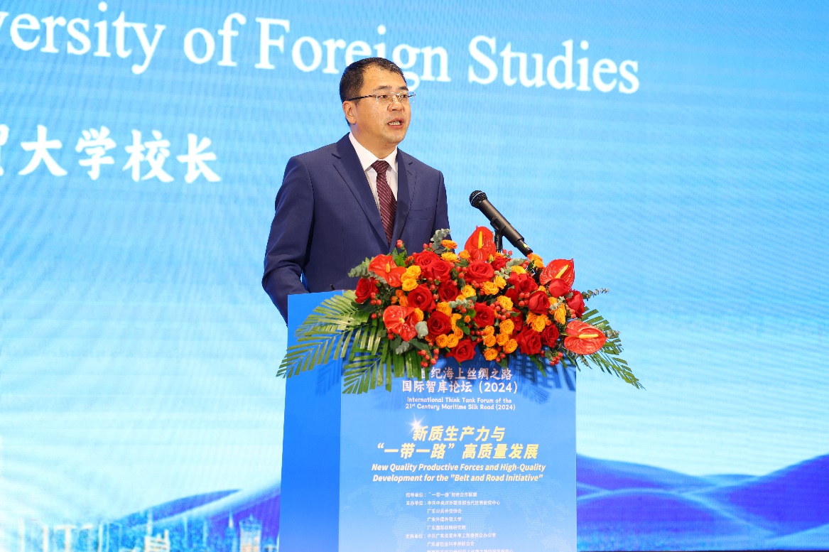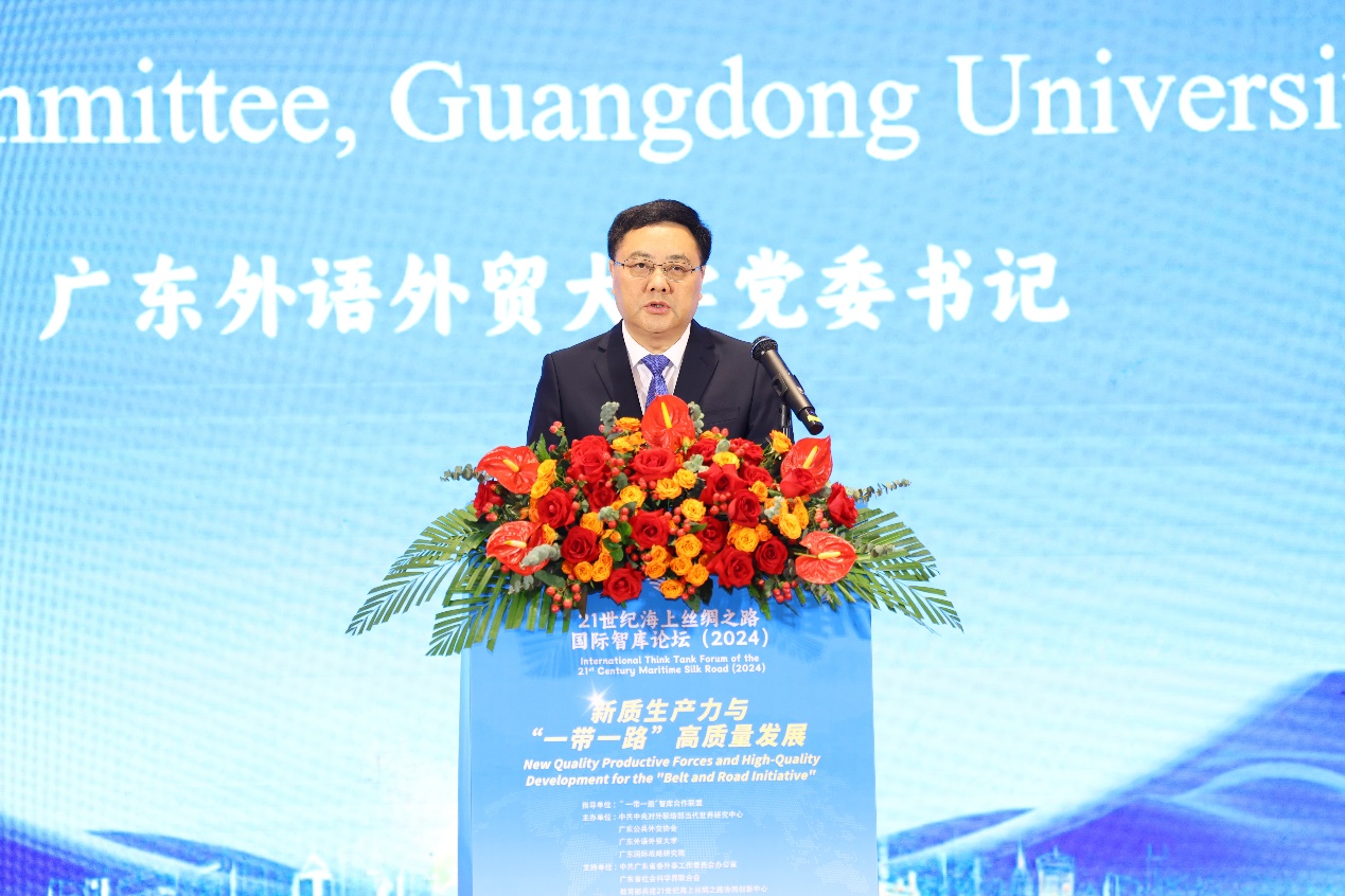 本网讯 为贯彻落实党的二十届三中全会关于健全因地制宜发展新质生产力体制机制的全面部署,积极响应国家主席习近平在二十国集团领导人第十九次峰会第一阶段会议上关于携手高质量共建“一带一路”的重要讲话,11月22日,第九届21世纪海上丝绸之路国际智库论坛在广东外语外贸大学国际学术交流中心举行。本届论坛由“一带一路”智库合作联盟指导,中共中央对外联络部当代世界研究中心、广东公共外交协会、广东外语外贸大学和广东国际战略研究院共同主办,并得到中共广东省委外事工作委员会办公室、广东省社会科学界联合会以及教育部省部共建21世纪海上丝绸之路协同创新中心的大力支持。