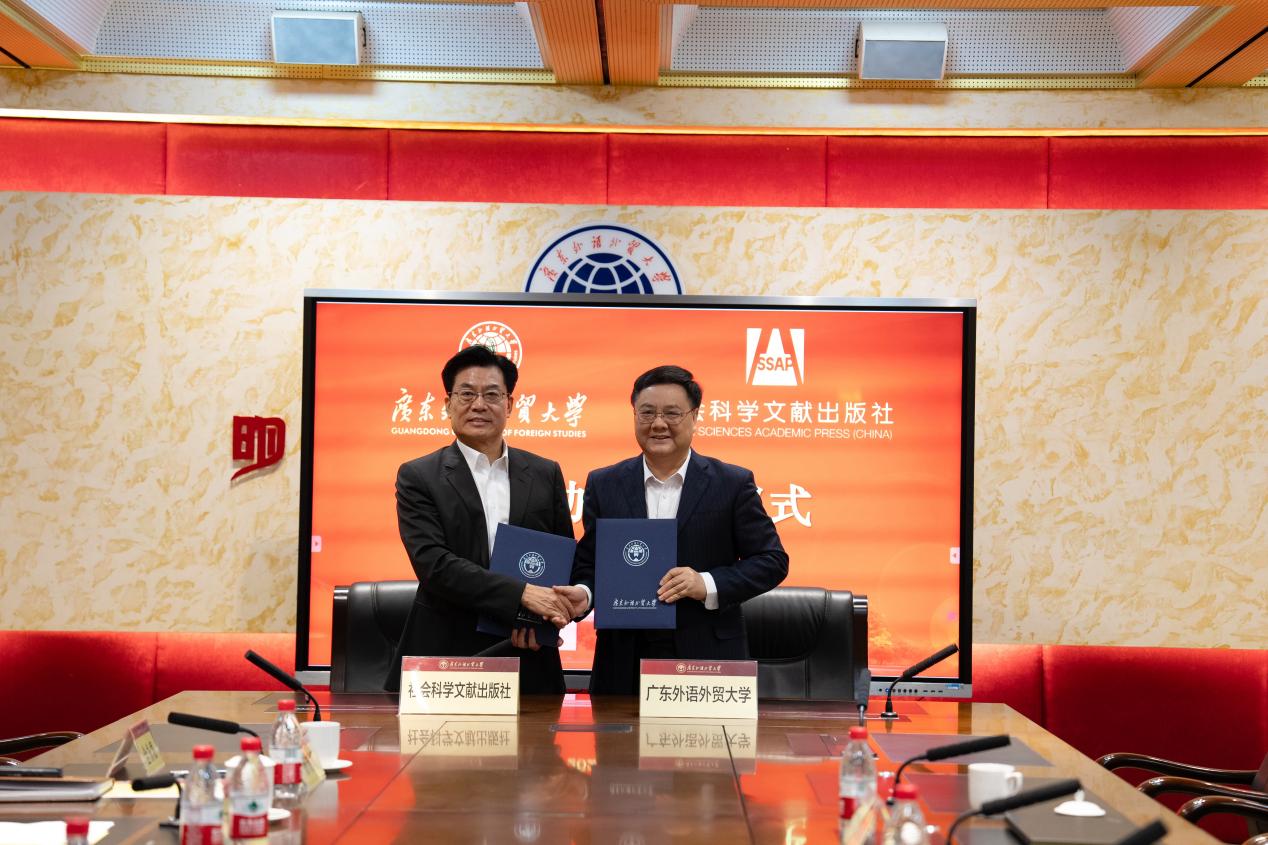 双方互动交流后,石佑启和冀祥德分别代表广东外语外贸大学和社科文献出版社签署了共建合作协议。