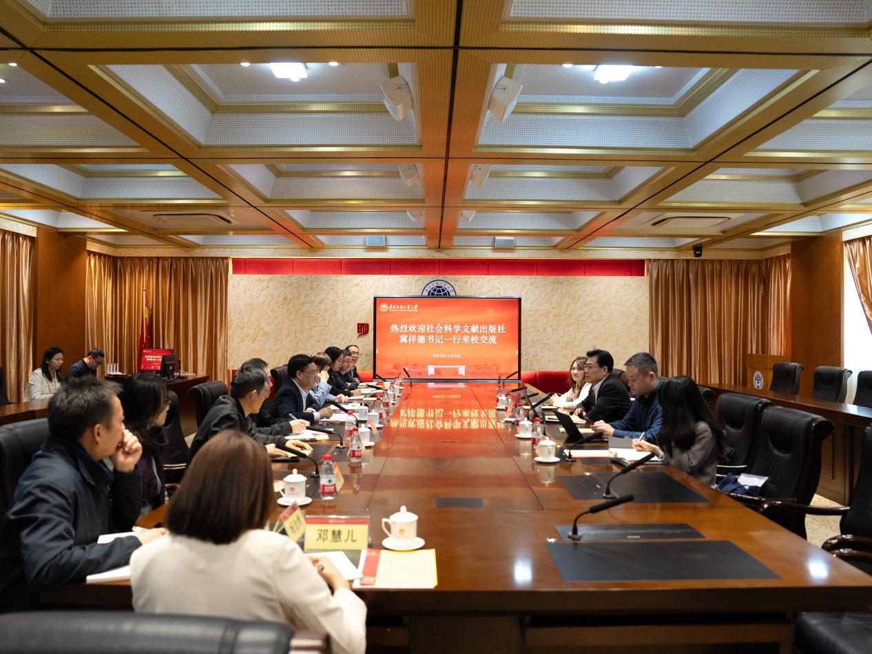本网讯 11月29日上午,社会科学文献出版社党委书记、社长冀祥德等一行来我校进行座谈交流。校党委书记石佑启,校党委常委、副校长何传添,科研部、相关教学和科研单位负责人参加座谈。会议由校党委常委、宣传部部长陈彦辉主持。