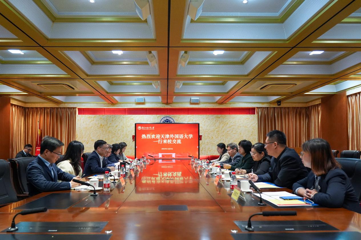 本网讯 12月9日,天津外国语大学党委书记周红蕾一行来访我校。我校党委书记石佑启、副书记葛小月出席交流活动。双方就外语学科合作发展、推进教育教学改革等方面开展交流。