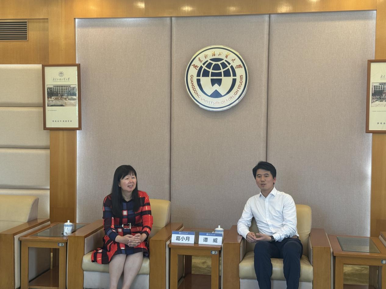 葛小月对宣讲团的到访表示欢迎,并介绍了学校的发展历程、学科建设及人才培养等情况。她表示,我校非常重视中联部等重点用人单位对学校人才培养的反馈,希望双方增进沟通,加强交流合作,欢迎中联部招录我校优秀毕业生。谭威是我校高级翻译学院优秀校友,他简要介绍了党的对外工作以及广外校友在中联部工作和发展情况,对母校的办学特色和人才培养成果予以高度评价。他表示,当前正值国际形势、地缘格局变化发展关键时期,从事党的对外工作大有可为,广外是培养外交和语言人才的重要高等学府,期待更多广外学子加入中联部,在参与党和国家外交事业中,为党奉献、为国奋斗、为校争光。