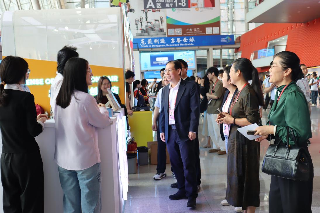 会谈后,申明浩一行参观了广交会发展史陈列馆,并先后来到境外贵宾俱乐部、展馆咨询处、办证大厅等工作岗位,看望慰问实习学生。期间,申明浩与同学们亲切交流,听取了实习学生参加本届广交会实习的感受和收获,勉励大家以饱满的热情、扎实的知识、专业的能力投入到实习工作中,展现广外学子良好的精神风貌和综合素质。申明浩一行也走访了合作单位广州市视源电子科技股份有限公司展位,双方就本届广交会参展情况、校企合作等方面开展交流。