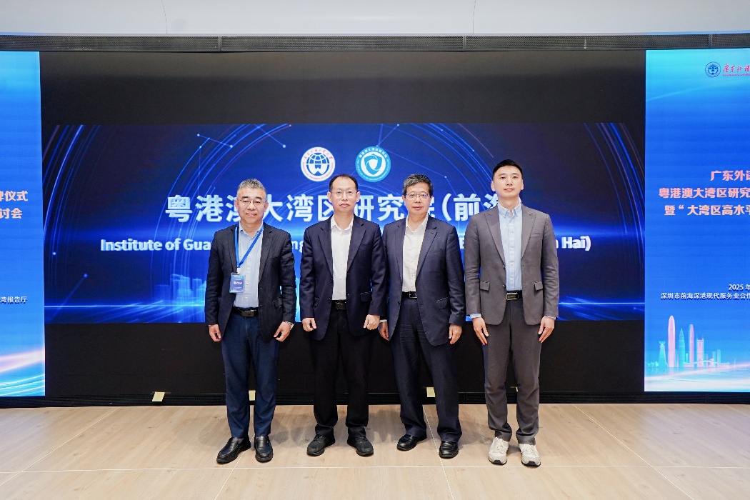 本网讯 4月26日上午,粤港澳大湾区研究院(前海)揭牌仪式暨“大湾区高水平对外开放”研讨会在深圳前海国际人才港港湾报告厅举行。来自省内和港澳的专家学者、企业嘉宾,广外深圳校友会代表,学校相关部门负责人以及师生代表齐聚一堂,就粤港澳大湾区高水平对外开放新范式、新路径进行研讨。我校副校长、粤港澳大湾区研究院院长申明浩在会上致辞。《粤港澳大湾区协同发展报告》蓝皮书在会上发布。