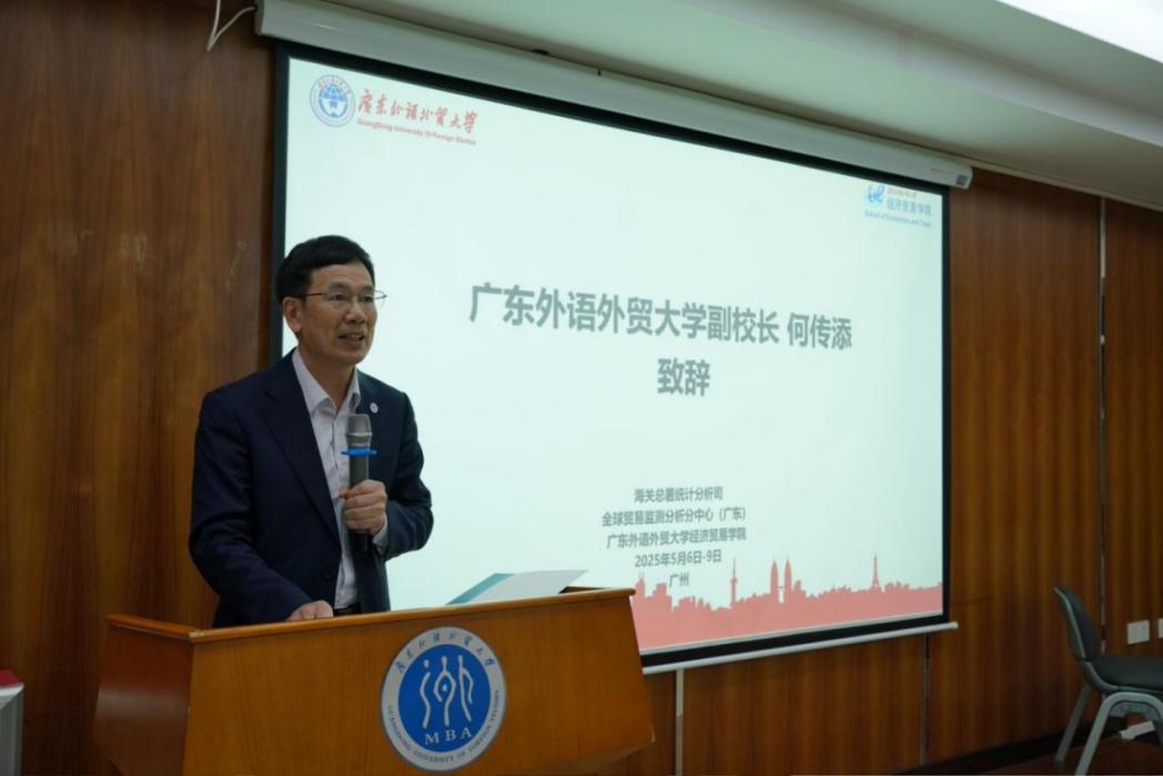 何传添对海关总署统计分析司长期以来对广外的支持表示衷心感谢。何传添总结了我校在学科建设、人才培养和服务社会中取得的一系列成果。他表示,当今我国外贸发展面临新困难、新挑战的背景下,海关担负着守国门、促发展的重大使命。2019年,广外与海关总署统计分析司签署合作框架协议,校署合作正式启动,2024年完成协议续签。双方通力合作,相互支持,取得了一系列高质量的合作成果。