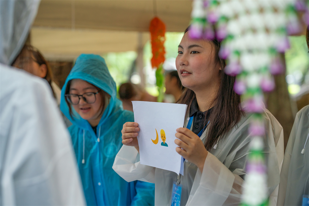 与此同时,“环球风味,人文广外”活动在文化广场上热闹非凡。印着广外英文缩写“GDUFS”字样的精美徽章、明信片、冰箱贴等琳琅满目;由广外人打造的原创IP“小外”也以其可爱呆萌的形象吸引了不少考生和家长。东南亚学院(东南亚研究院)结合文化特色推出了泰国剪纸花和猜字谜游戏,帮助考生和家长更好地了解东南亚地区的文化;中国语言文化学院摊位前,中文学子身着汉服,一幅幅水墨丹青迎风飘扬,尽显中文魅力与诗意;区域国别学院摊位前,金黄酥脆的意大利风味千层酥层层叠叠,细腻的糖霜吸引了不少人前来品尝。一位来自中山的考生兴奋地谈到,广外的校园文化特别丰富,让她感受到了多元文化的魅力,她希望能有机会在广外学习,体验开放包容的文化。