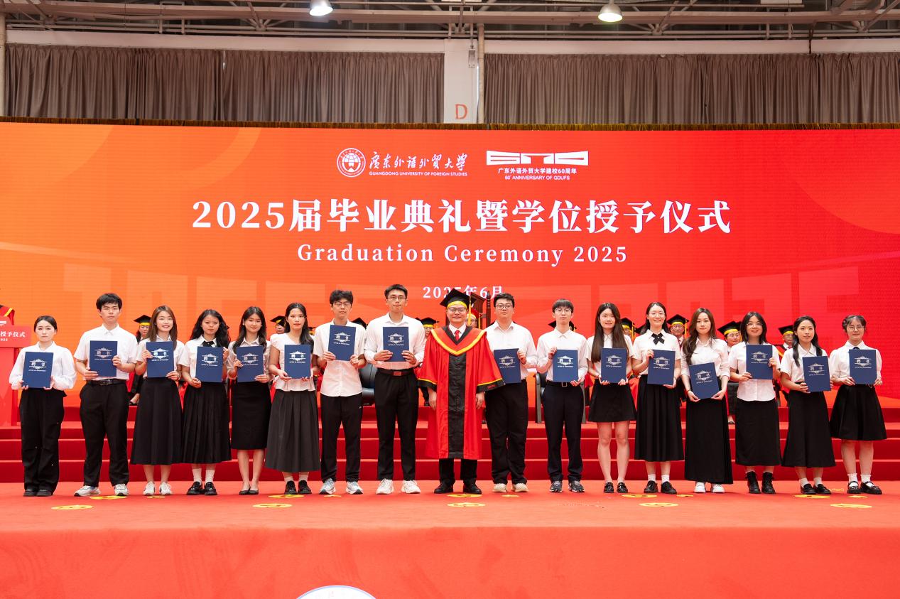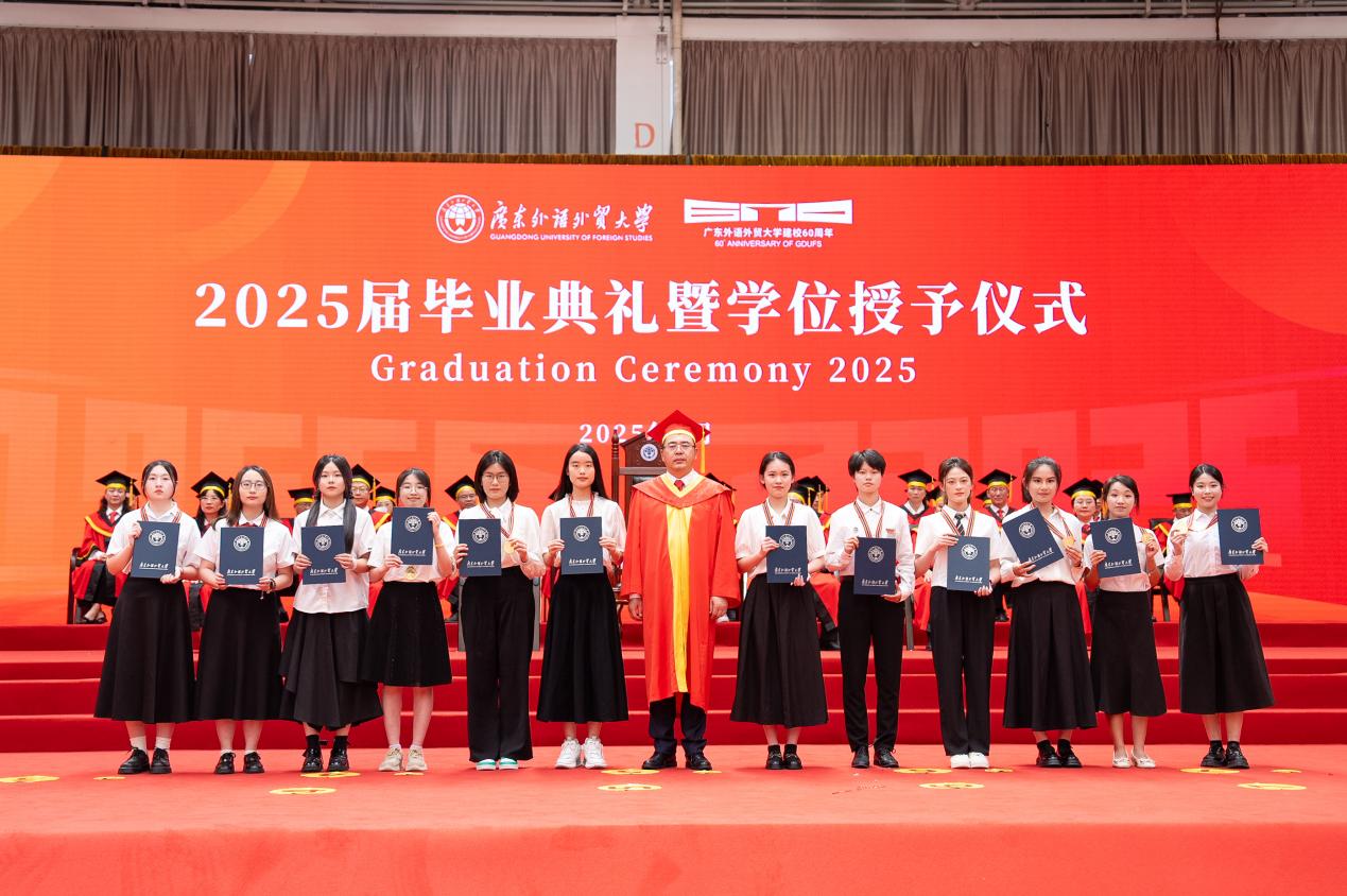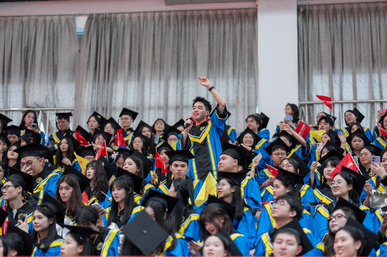 把握脚下路,方能勇立潮头。闫相斌勉励毕业生们深刻理解所处的历史方位,认清机遇与挑战,才能校准方向,砥砺前行。他表示,你们脚下的路通向强国伟业,这是你们施展才华的人生主场。广外已为你们铺就成长的道路,远方需要你们自己迈开脚步,向人生目标迈进,与国家需求同频,跟时代脉搏呼应。你们脚下的路穿越百年变局,这是你们探索未来的全新征途。只要你们秉持广外人敢为人先的闯劲、永不服输的韧劲、善作善成的干劲,就一定能够在风浪中找到新航道,在变局中闯出新天地。你们脚下的路伴随科技浪潮,这是你们自我突破的重要赛道。唯有保持终身学习的毅力,提高拥抱变革的勇气,迈开跨界融合的步伐,用语言能力衔接技术工具,用人文思维驾驭算法逻辑,才能在数字赛道上掌握主动、驰骋未来。
