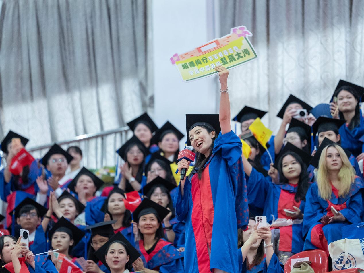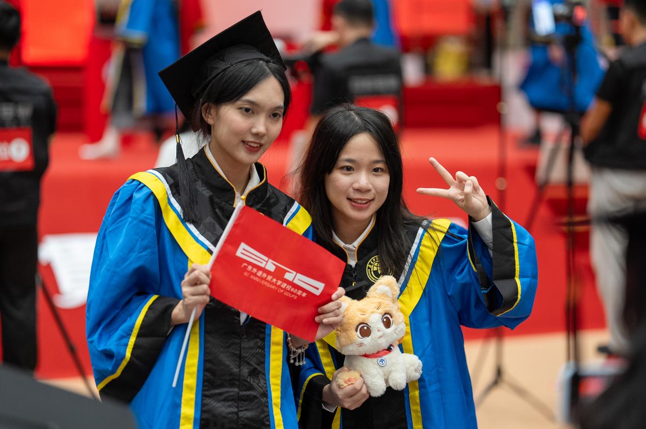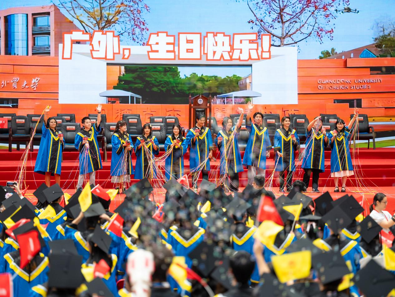 闫相斌希望同学们带着甲子广外的精神烙印,以“明德尚行”的品格立身,以“学贯中西”的本领立业,在强国建设、民族复兴新征程中乘风破浪、阔步向前。最后,他诚挚邀请毕业生们在60周年校庆之际重返母校,与恩师同窗共叙当年情,和师弟师妹畅谈未来梦。
