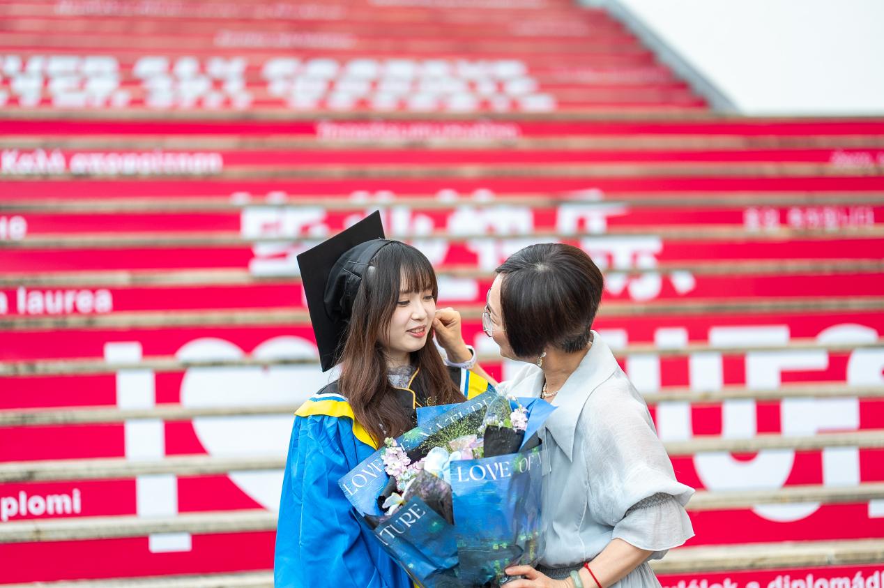 毕业生代表、来自塞尔维亚的国际商务(全英教学)本科专业留学生多斯塔纳向母校、老师、同学、家人表达了感激之情。她表示,在广外的求学旅程中,自己主动跨出舒适圈,勇敢面对各种挑战,感恩广外的包容与温暖支撑着自己一路成长,不断成为更好的自己。