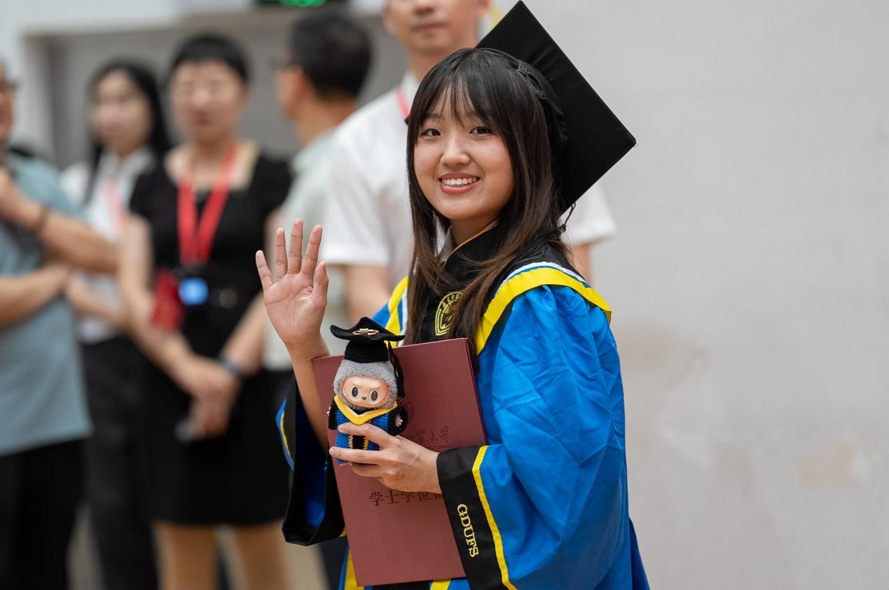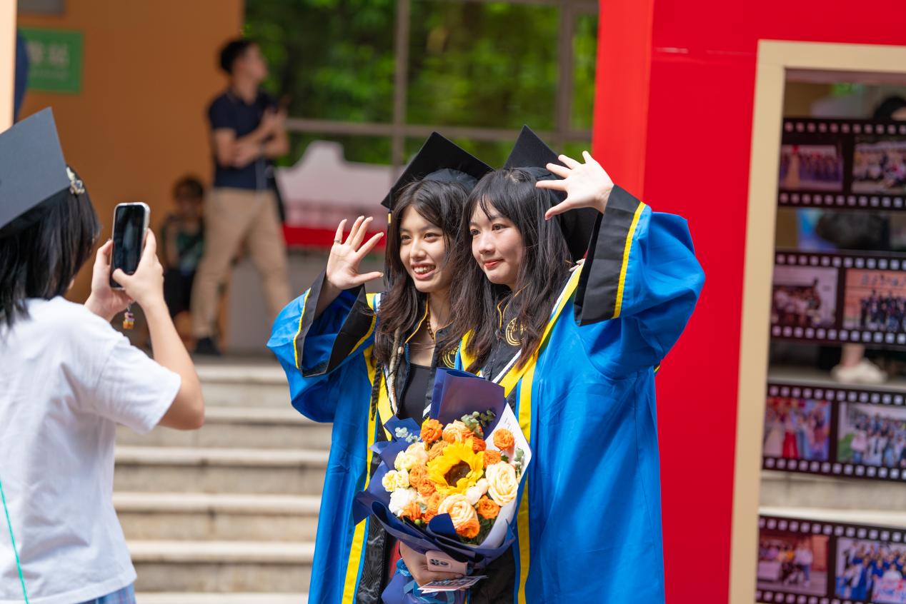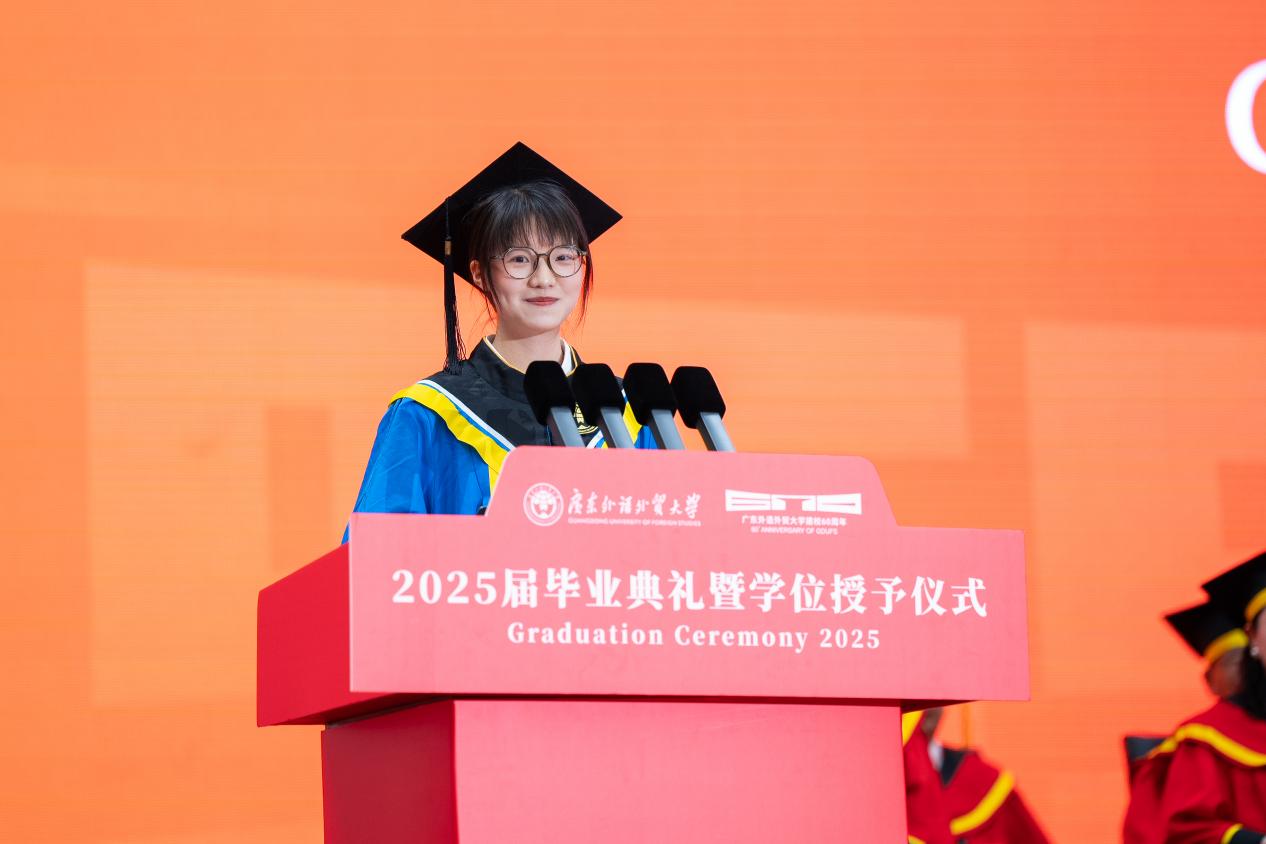 毕业生代表、新闻与传播学院硕士毕业生寻冬雪在即将入职腾讯公司之际,满怀深情地表示,“白云山青”是母校赋予我们的学术脊梁,“碧溪水蓝”记录着师友共度的美好时光。感恩母校,用学贯中西的沃土,让广外人得以在多元文化的碰撞中不断成长、追逐梦想,祝愿广外勇立潮头,桃李芬芳。