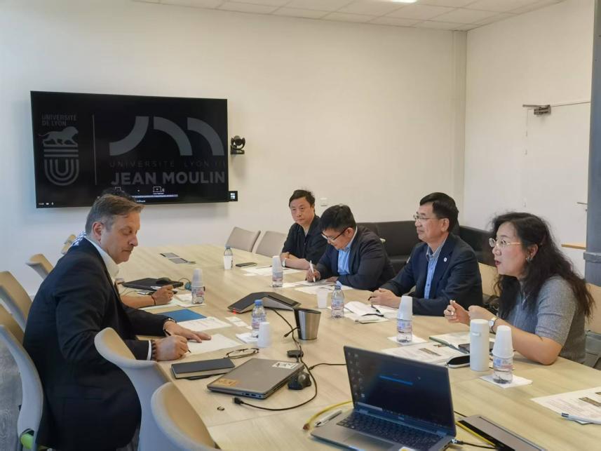 在法国里昂访问期间,何传添一行到访里昂第三大学,里昂三大副校长曼努埃尔·约伯特(Manuel Joberth)和国际事务负责人杨潇博士与代表团进行了深入交流。在本次交流中,双方就深化合作达成多项共识:继续推动欧盟伊拉斯谟+计划协议等协议落地,重点推动共建法语国家研究中心,并将于11月来我校召开首次双边论坛及签署学生交换、教师交流、行政人员互访协议,推动双方全方位合作与交流。