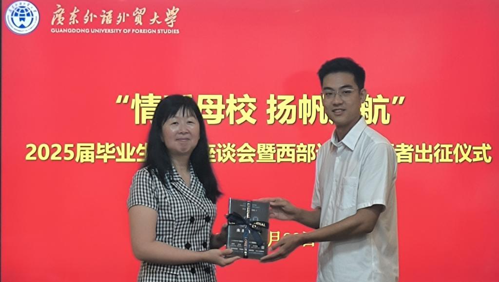 本网讯 6月26日上午,我校在白云山校区第二会议室举行“情系母校 扬帆起航”2025届毕业生代表座谈会暨西部计划志愿者出征仪式。校党委副书记葛小月,学生工作部、校团委、研究生院、学生就业创业中心、校友事务与合作发展处相关负责人和2025届应届毕业生代表、西部计划志愿者代表参加座谈会。