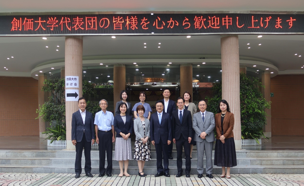 石佑启介绍了我校日语语言文学教育与日本研究领域的特色优势及育人成果。他指出,日语专业作为首批国家级一流本科专业建设点,承载着学校学科建设的战略使命。目前学院已与创价大学等28所日本高校建立了长期合作,共同开展双学位联合培养、学生交换等项目。他表示,未来愿与创价大学在师生互访、联合科研、学术研讨等多领域深化合作,共同推动中日人文交流和文明互鉴。值此广东外语外贸大学建校60周年校庆及亚洲大学校长论坛举办之际,谨向铃木美华校长发出诚挚邀请,为构建新时代亚洲高等教育共同体贡献智慧力量。