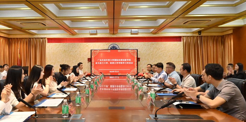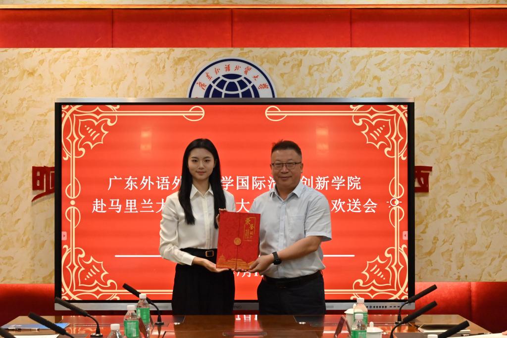 作为赴美和赴欧的学生代表,2023级李彬彬、2024级刘晓茵分享了他们的经历与收获,他们谈到,国际治理创新学院的课程体系与实践平台,夯实了学子们的理论基础和综合能力、拓展了国际视野、坚定了理想信念、提升了自信和底气。他们将牢记“明德尚行,学贯中西”校训,以专业素养讲好中国故事、以广外胸怀促进中外文明互鉴。