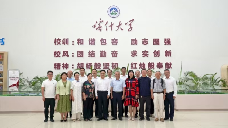 石佑启一行赴喀什大学开展调研并慰问学校参与援疆的银龄教师及辅导员,喀什大学党委书记丁邦文等出席会议。丁邦文对广外长期以来的师资支援、学科帮扶表示衷心的感谢。他强调,喀什大学立足南疆,以铸牢中华民族共同体意识为主线,形成了特色鲜明的办学体系,并期待通过此次交流进一步深化两校合作,实现资源共享与优势互补。石佑启介绍学校近年来取得的发展成果及优势特色,回顾总结两校对口支援合作成果、框架合作协议推进情况。展望未来,期望进一步深化合作,共同打造涉外法治人才培养高地,建强师资队伍守好教书育人阵地,构筑服务国家对外开放战略要地,为助力喀什大学高质量发展,打造教育援疆新模式,谱写中国式现代化新疆篇章贡献力量。双方围绕学科和专业建设、师资队伍建设、人才培养、科学研究等方面内容深入探讨,全面推动合作协议落实落地。