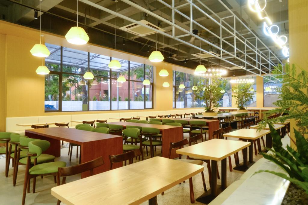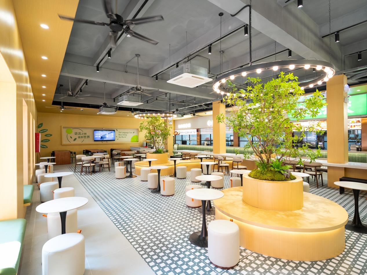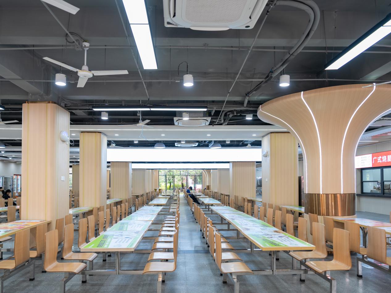 白云山校区学二食堂整个食堂后厨和大厅的布局重新进行了调整,充分利用了食堂空间,增加了售卖区域、休闲空间和新建卫生间,引进知名连锁餐饮品牌和特色餐饮档口,可为师生提供种类丰富的各色餐饮美食,打造适合师生休闲娱乐的校园餐厅。