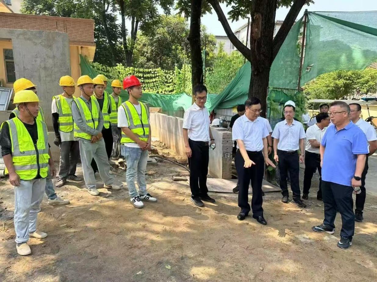 暑期建设工作启动前,学校便将基建、后勤修缮、绿化改造项目作为提升师生幸福感、保障教学科研有序开展的重要民生工程来抓。校党委书记石佑启、校长闫相斌、副校长谢伟光等领导多次深入校园工地现场,实地走访查看各项目进展,不仅细致叮嘱工程推进中的关键要点,强调要严把安全关、质量关、进度关,确保每项改造都贴合师生实际需求,还亲切慰问高温下坚守岗位的工作人员,并为施工人员送去关怀与鼓励。