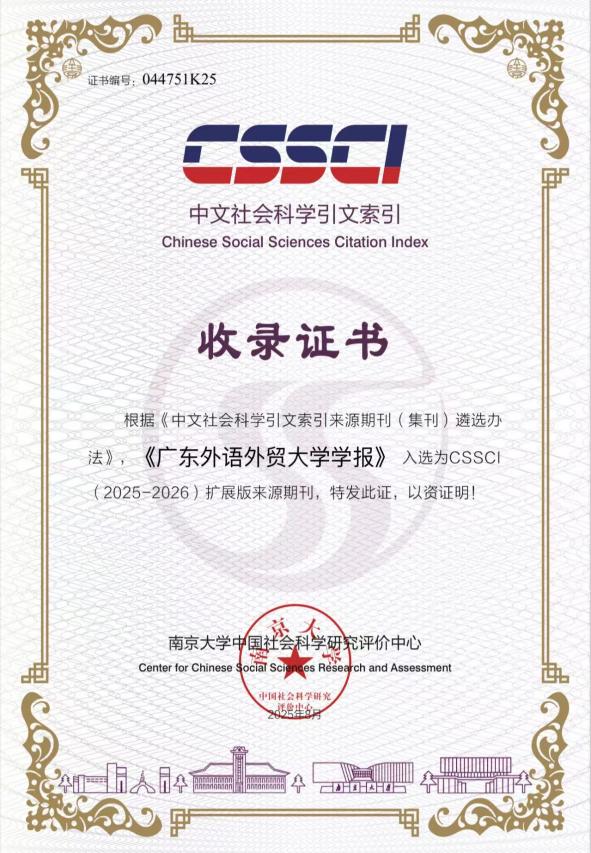 本网讯 据南京大学中国社会科学研究评价中心中文社会科学引文索引(CSSCI)数据库最新数据显示,我校《现代外语》《国际经贸探索》入选CSSCI(2025-2026)来源期刊,《广东外语外贸大学学报》入选CSSCI(2025-2026)扩展版来源期刊。