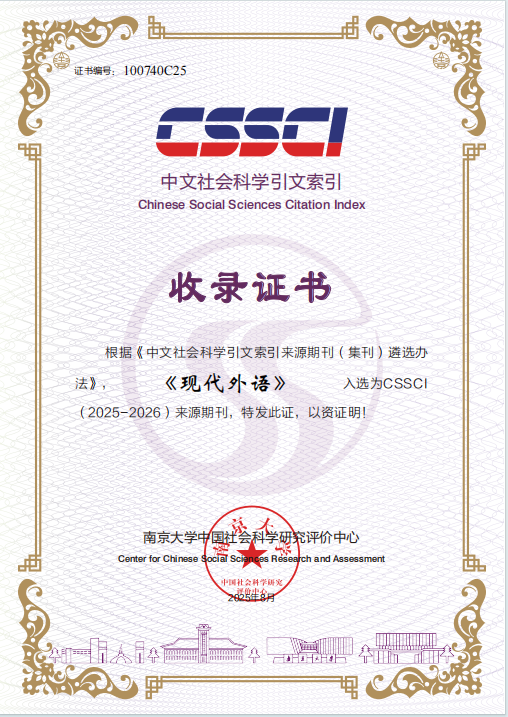 《现代外语》创刊于1978年,是由广东外语外贸大学主办的语言学及应用语言学领域核心学术期刊、双月刊。内设语言学、二语研究及其应用、前沿综述、书刊评介等栏目。期刊秉承“重质量、显特色”的办刊宗旨,在人文社科领域影响力强,同时为“中文社会科学引文索引(CSSCI)来源刊”“北大中文核心期刊”,中国人民大学报刊复印资料转载刊物。2015年以来,连续被评为“中国国际影响力优秀学术期刊”,荣获“广东省优秀期刊”(2015)、“全国高校精品社科期刊”(2023)等荣誉称号。