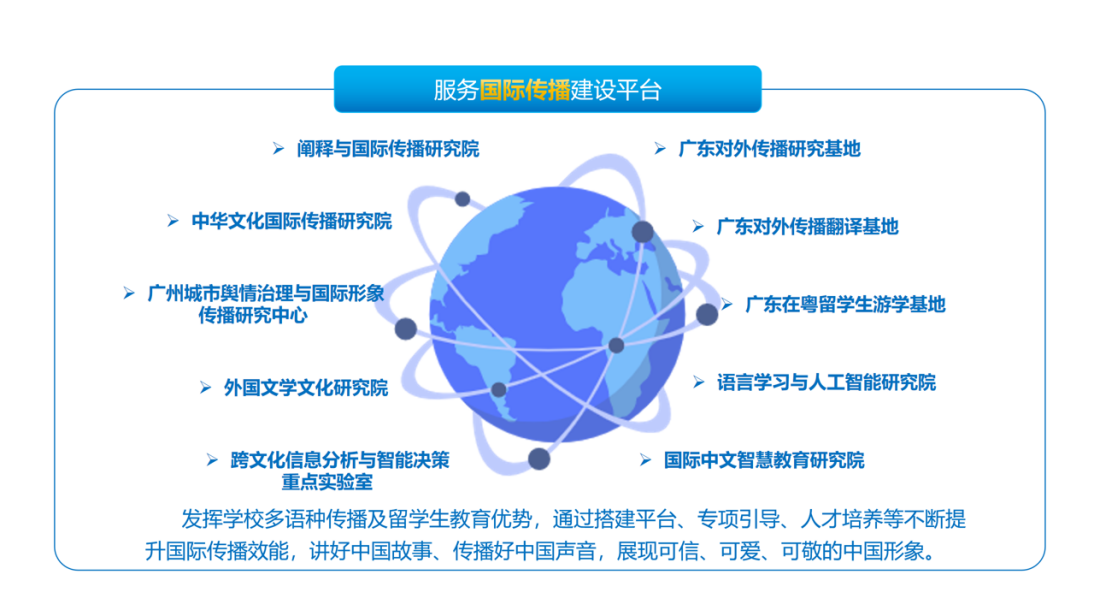 2012年以来,广外以建设国际化特色鲜明的高水平大学为目标,深化改革、凝聚特色,科研服务国家与广东发展能力持续提升。
