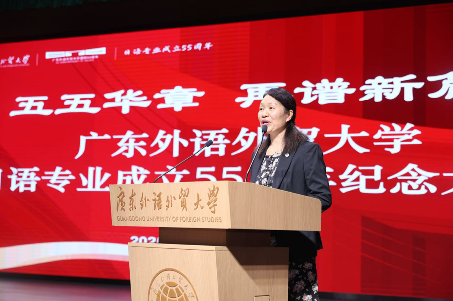 教育部高等学校外国语言文学类专业教学指导委员会日语分委员会秘书长赵冬茜在致辞中肯定了广外日语专业55年来的办学成果和行业示范作用,希望持续深化专业创新与跨学科融合,为全国日语教育贡献更多力量。