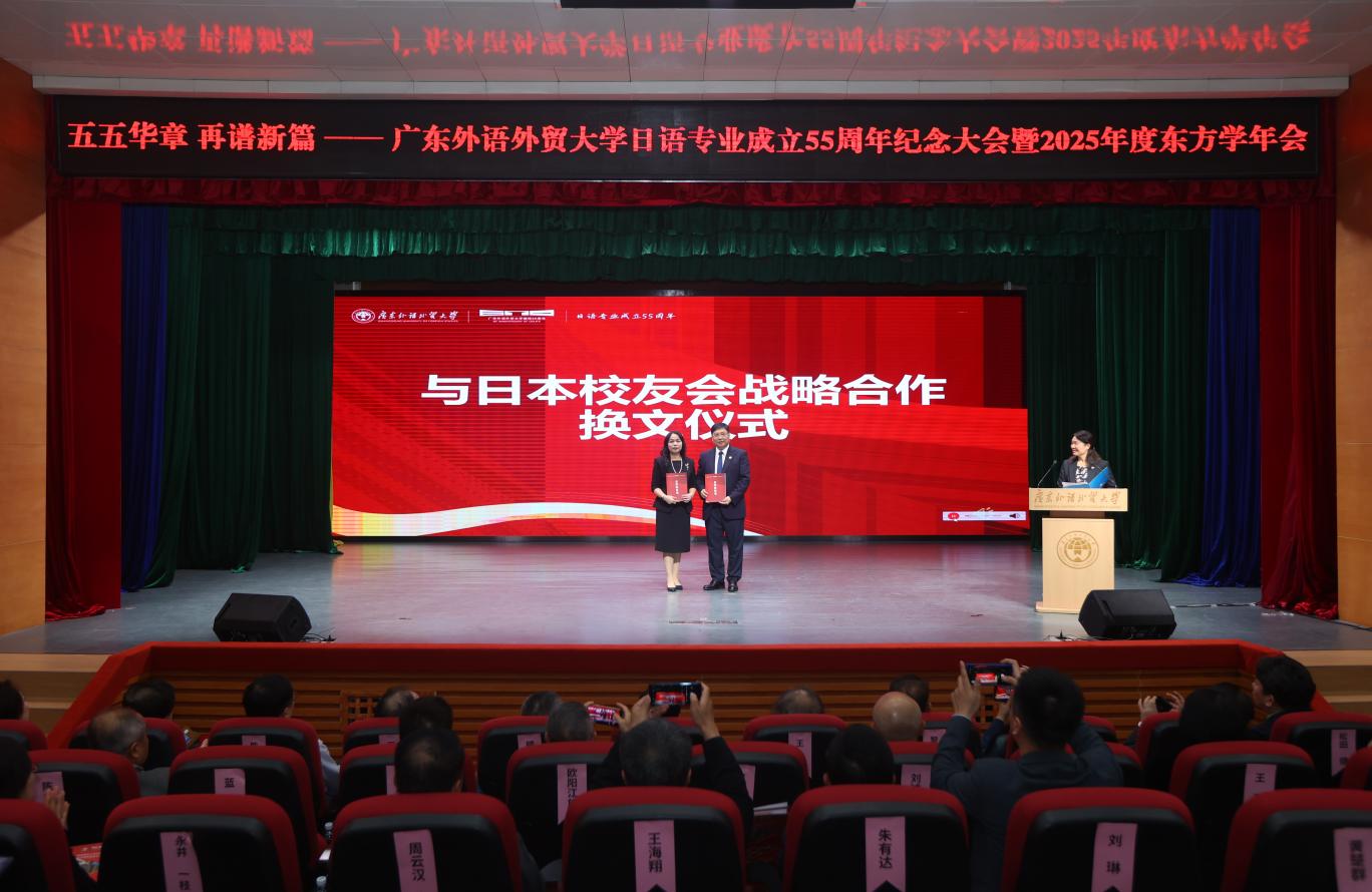 本网讯 五十五载春华秋实,岁月如歌;五十五载栉风沐雨,弦歌不辍。近日,五五华章,再谱新篇——广东外语外贸大学日语专业成立55周年纪念大会在白云山校区第六教学楼报告厅召开。校领导,海内外学界专家,曾任学院领导、荣休教师、校友代表,全院教职工,以及学生代表齐聚一堂,共同回顾我校日语专业55载办学历程,共绘学科发展新蓝图。