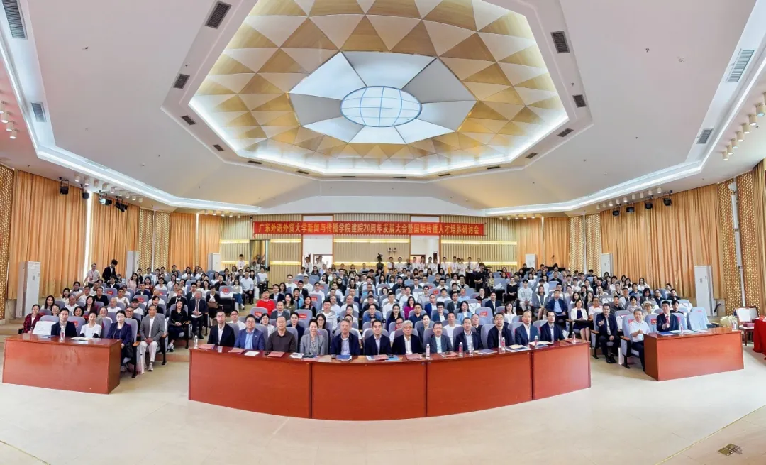 本网讯 11月15日,广东外语外贸大学新闻与传播学院建院20周年发展大会暨国际传播人才培养研讨会在大学城校区八角楼报告厅举行。大会以“廿载华章 再启新程”为主题,总结广外新闻与传播学院二十年的办学历程与辉煌成就,展望新时代国际传播与新闻教育的未来蓝图。来自国内外高校、媒体机构的专家学者、校友代表、师生代表齐聚一堂,共襄盛典。
