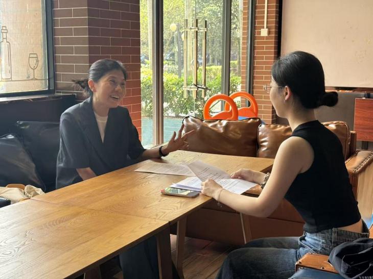 裴允卿(左)接受采访