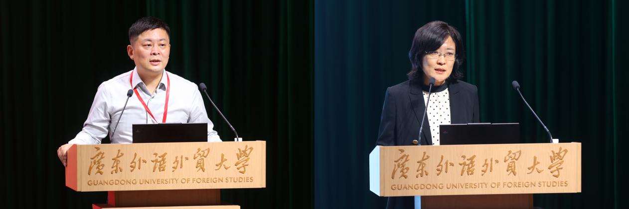 葛睿主持(左)与鄢秀做主旨报告(右)