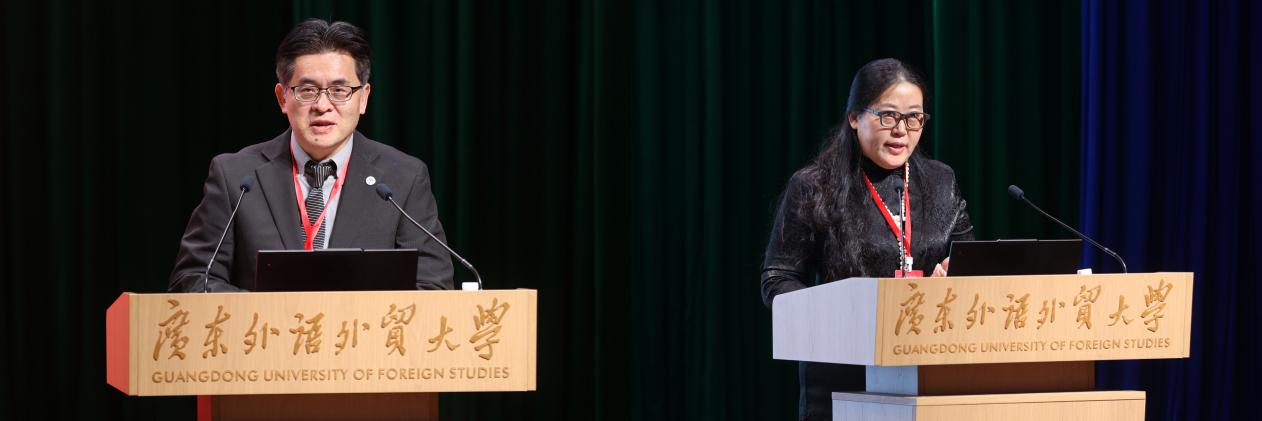 林敏洁主持(左)与陈多友做主旨报告(右)