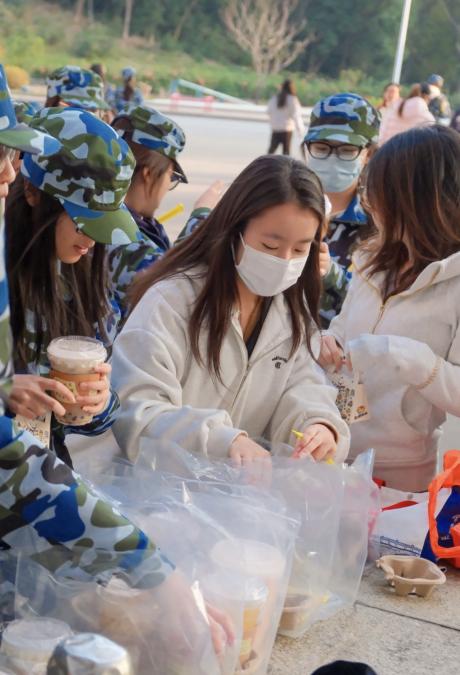 看着收到慰问礼物的同学们脸上洋溢着笑容,中文学院的朋辈导师郭老师不禁感慨:“面对寒冷的天气,同学们也没有消极抱怨,而是热情分享得到的姜茶,我在他们身上看到了韧性和乐观。”寒风浇不灭高涨的士气,扬起的尘土蒙不住炽热的心。在分享中收获,在合作中成长,在团队中完善自我——这份来自集体的温情将呵护冬日小树成长为春日嘉木,为这场迷彩之旅添一分色彩,增一分温度。
