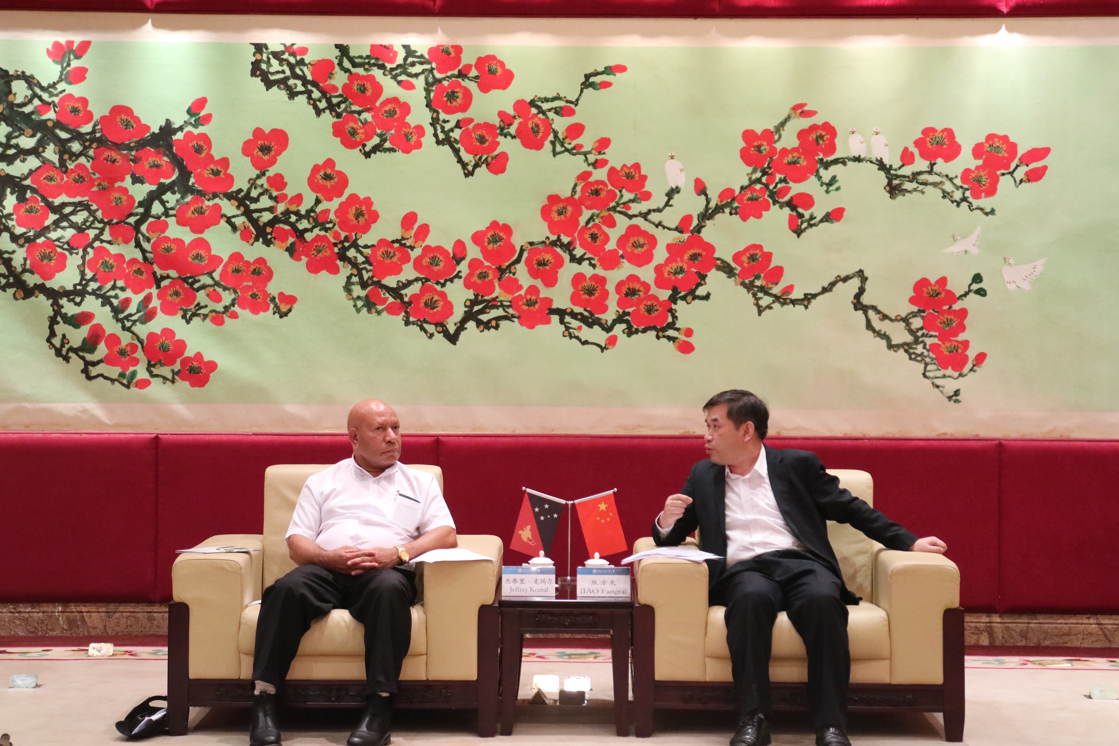 焦方太向来宾简要介绍了我校与太平洋岛国合作情况。自2015年起,我校配合广东省外办和广东省友协,面向巴布新几内亚、密克罗尼西亚、汤加王国、萨摩亚独立国、瓦努阿图共和国、斐济共和国、纽埃、库克群岛八个太平洋岛国开展了7期太平洋岛国系列培训项目,包括4期高级公务员培训班和3期青年领袖培训班,共有162名学员参加了培训。代表团在广东期间系统学习了中国及广东省的政治、经济、文化、科技、教育等方面的情况。培训班的开办促进了我校与太平洋岛国机构间的交流与合作。焦方太提到,我校曾于2016年举办主题为“转型中的太平洋岛国:机遇与挑战”国际研讨会,这也是中国举办的第一次关于太平洋岛国的国际学术研讨会。