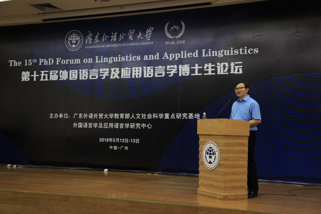 本网讯 5月12日第十五届外国语言学及应用语言学博士生论坛在我校北校区图书馆报告厅开幕。我校副校长、外国语言学及应用语言学研究中心主任刘建达在开幕式上致辞。论坛为期两天,吸引了来自英国、西班牙、德国、俄罗斯以及中国内地、香港和澳门知名院校的在读语言学博士生等近百人参加了会议。