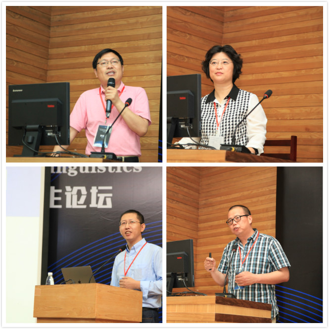 南京大学的陈新仁教授、深圳大学的纪瑛琳教授、北京师范大学的卢春明教授和天津师范大学的闫国利教授先后做主旨发言。陈新仁强调中国语用学应从自身语言文化视角出发,发掘中国本土语用文化特有的文本与阐释资源,走一条彰显中国特色、中国风格、中国气派的创新研究之路。纪瑛琳从认知语言学、心理语言学的角度通过比较母语者和二语学习者在运动事件认知方面的差异说明了语言对思维的影响。卢春明详细介绍了自然情境下多人语言交流的近红外光学成像研究,并揭示了教学过程中教师与学生的脑活动同步机制。闫国利报告了其团队通过眼动仪观察到个体进行阅读时受到背景无关语音的干扰及其心理机制。四位专家的报告引起了在座师生的极大兴趣,他们在会后和茶歇期间与专家们进行了深入的交流。