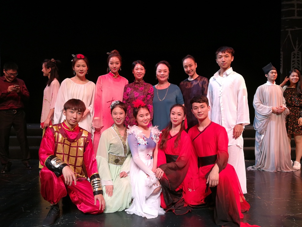 本网讯 5月12和13日,由我校艺术学院学生参演大型原创诗歌剧《诗经·乐图》在广州大剧院实验剧场精彩上演。艺术学院党总支书记朱珍葶及部分师生应邀观看演出。