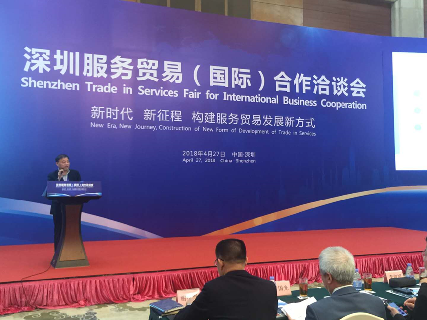 本网讯 4月27日,深圳市首届服务贸易国际合作洽谈会在深圳召开。会议主题为“新时代、新征程、构建服务贸易发展新方式”,以“抓住国际机遇实现服务贸易新突破”为宗旨。我校经贸学院教授李晓峰在会上作题为“粤港澳大湾区服务贸易合作机遇分析”的主旨演讲。国家部委领导,深圳市政府领导,著名经济学家与服务贸易专家,服务贸易行业龙头企业负责人,来自亚洲、欧洲、北美洲、南美洲、非洲等30余个国家和地区的代表共350多人参加会议。