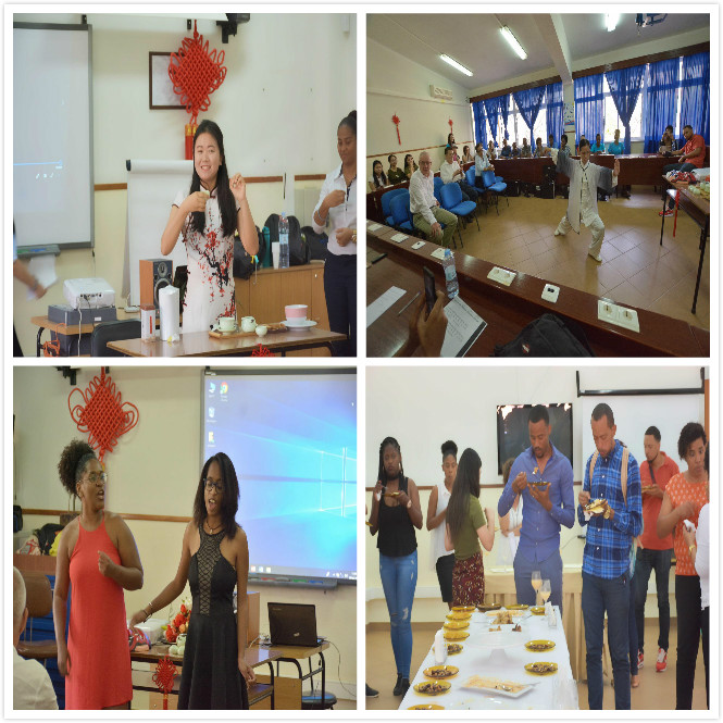 汉语课程开班仪式后,孔院师生进行了精彩的茶艺表演、武术表演,还一同进行了愉快的中华美食分享。开班仪式前,佛得角大学孔子学院与皮亚杰大学就开展汉语教学进行合作会谈,并开始授课。