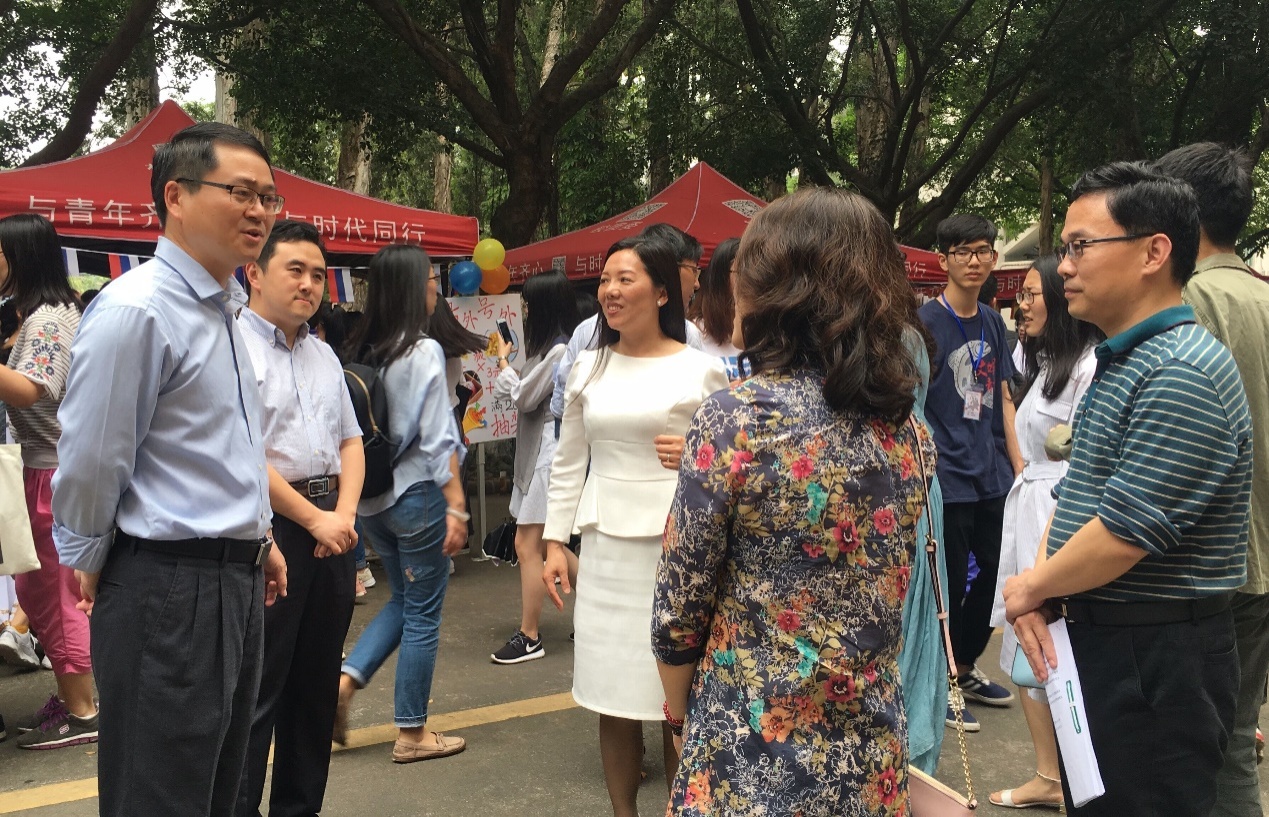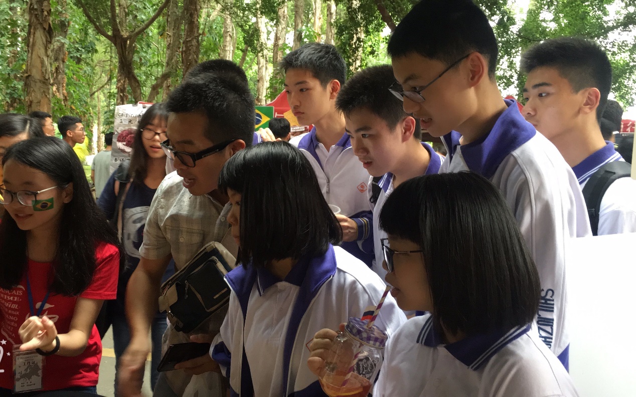 本网讯 4月12日下午,我校优质生源基地广州市第十六中学50多名师生应招生办邀请前来我校参加欧罗巴文化节,尽情体验西方文化,品尝各国美食,感受异域风情,并与出席文化节的外国友人交流在学习生活和文化节体验方面的感受。本次活动不仅拓宽了高中学生的视野,使其能够更直观地感受大学生活,而且还进一步加强了我校与“优质生源基地”学校的合作和交流,密切了双方的关系。