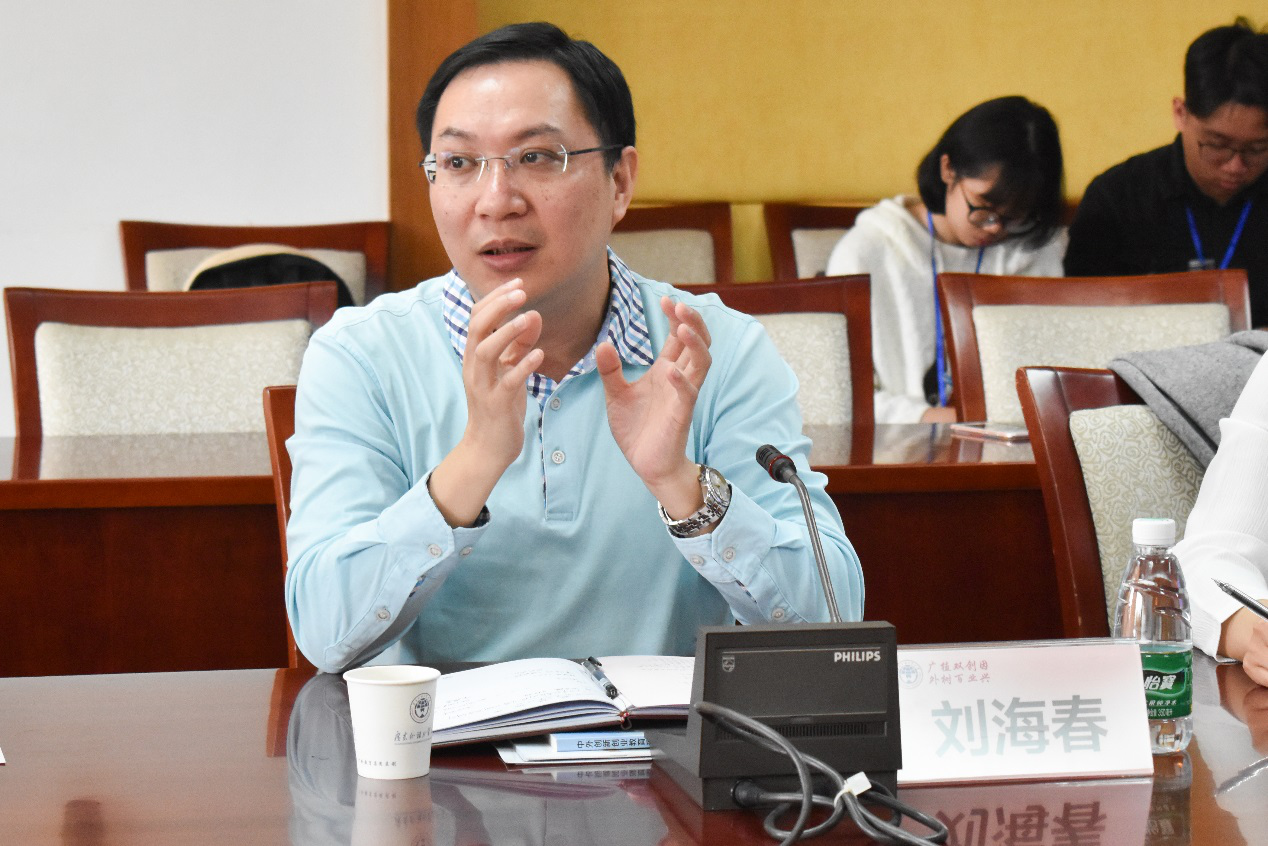 刘海春对广州市教育局和12所院校创新创业教育工作负责人的到来表示欢迎,并介绍了学校的概况。谷忠鹏对我校创新创业工作表示肯定,对我校创新创业教育的理念、平台和机制表示赞赏。他希望各院校加强合作交流,实现优势互补,合作共赢。各院校的创新创业教育工作负责人就创新创业教育的师资队伍建设、项目孵化和校企合作等方面进行了热烈的交流。